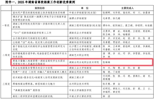 6月9日,湖南省“国际档案日”专场活动在省委机关举办。湖南省高等教育学会公布了2025年湖南省教育档案科研优秀成果、高校档案工作创新优秀案例的评审结果。我校党政办张琳琳获创新优秀案例二等奖1项、科研优秀成果三等奖1项,展现了近年来我校档案工作创新发展的成果。