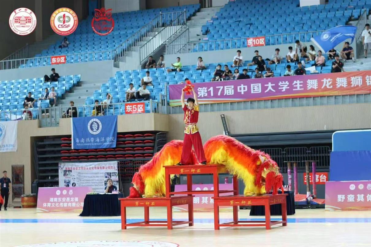 7月16日至18日,由中国学生体育联合会主办、中国学生体育联合会大学舞龙舞狮分会执行、湖南第一师范学院承办的第17届中国大学生舞龙舞狮锦标赛(舞狮项目)在湖南第一师范学院新体育馆举行。本次比赛设置了传统南狮与传统北狮、南狮自选与北狮自选、南狮规定与北狮规定6个竞赛大项,来自全国58所高校的近900位运动员、教练员、领队等齐聚于此,以狮为媒,同台竞技。