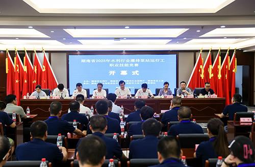 7月21日上午,由湖南省水利厅主办、湖南水利水电职业技术学院和益阳市大东口电排管理站承办的湖南省2025年水利行业灌排泵站运行工职业技能竞赛在我校盛大开幕。湖南省水利厅党组成员、副厅长尹黎明,学校党委书记常世名,湖南省人力资源和社会保障厅职业技能鉴定中心副主任欧雁,湖南省职工技术协作办公室二级调研员邹红梅,湖南省水利厅等部门相关领导出席开幕式。仪式由我校党委委员、副校长卜志纯主持,来自全省14个市州的60名参赛选手齐聚一堂,共赴这场水利技能盛会。
