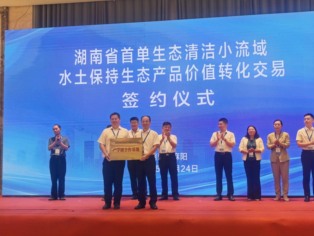 仪式上,王玉成代表学校向麻阳苗族自治县人民政府授予“产学研合作基地”牌匾,麻阳苗族自治县人民政府副县长张军代表县政府庄重接牌。值得关注的是,本次产学研合作基地的建立,以“麻阳苗族自治县生态清洁小流域水土保持产品价值实现项目”为重要依托。该项目的签约仪式作为湖南省首单生态清洁小流域水土保持生态产品价值转化交易签约仪式的核心环节同期举行,赋予了此次校地合作更深刻的生态价值与创新示范意义。这标志着我校在服务地方发展,尤其是助力生态价值转化机制探索方面,已走在全省前列。