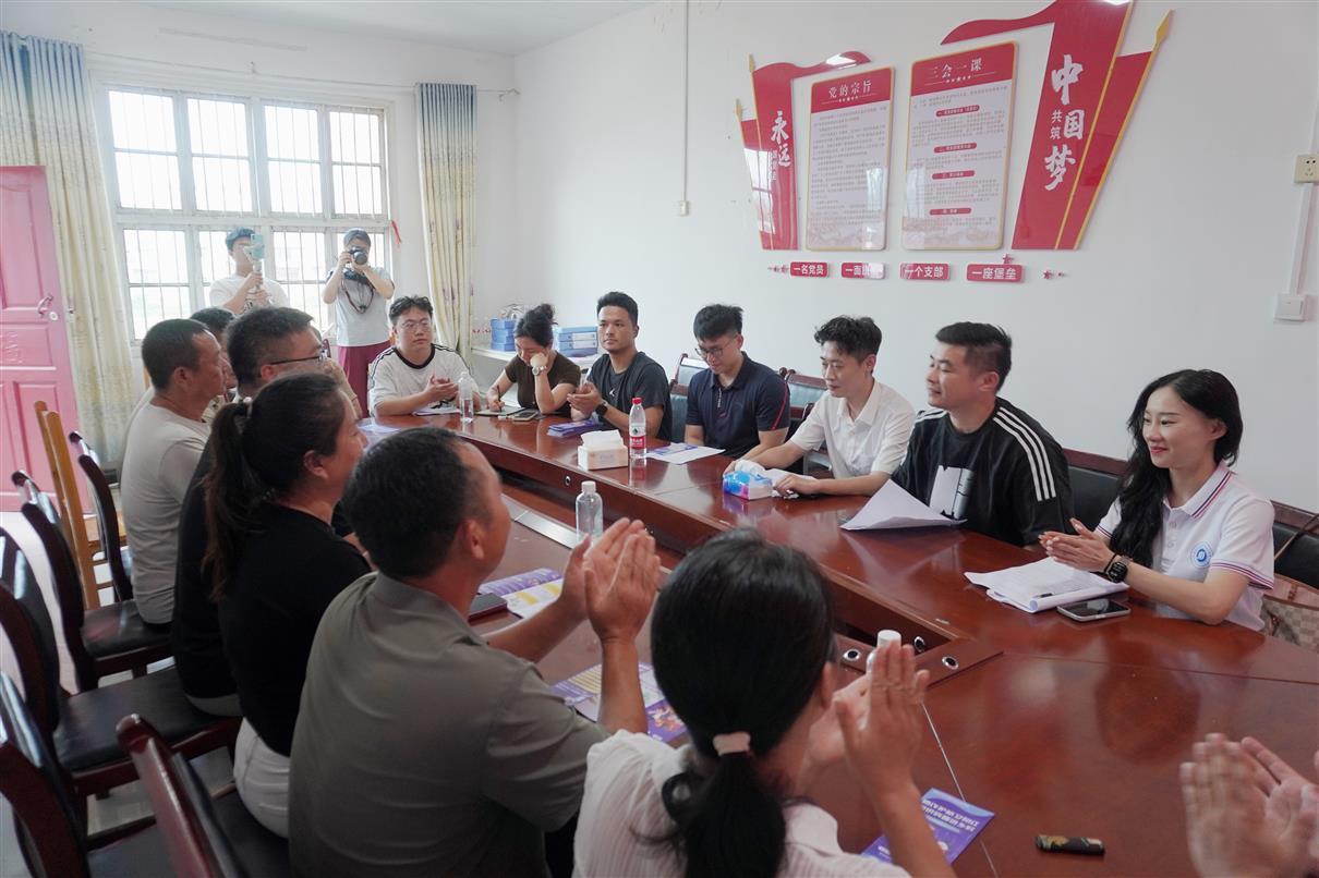 当日午后,“三下乡”专项座谈会暨“大学生社会实践基地”授牌仪式在岩山村村委会举行。岩山村村支书周小亮代表全村群众对师生团队表示欢迎,他用质朴的语言介绍了村庄的水利设施现状、产业发展瓶颈及村民实际需求,字里行间流露着对乡村振兴的迫切期盼。