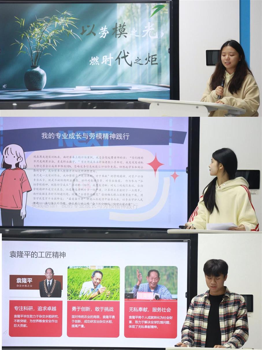为弘扬劳模精神、培育劳动风尚,11月10日,由经济管理学院团总支主办、学生会承办的“青春对话劳模,奋斗诠释担当”主题宣讲比赛在图书馆实训综合楼608教室举行。活动吸引了全院上百名同学积极参与,经过初赛选拔,共有9名选手脱颖而出,站上决赛讲台,以青春之声传递劳模精神的时代强音。