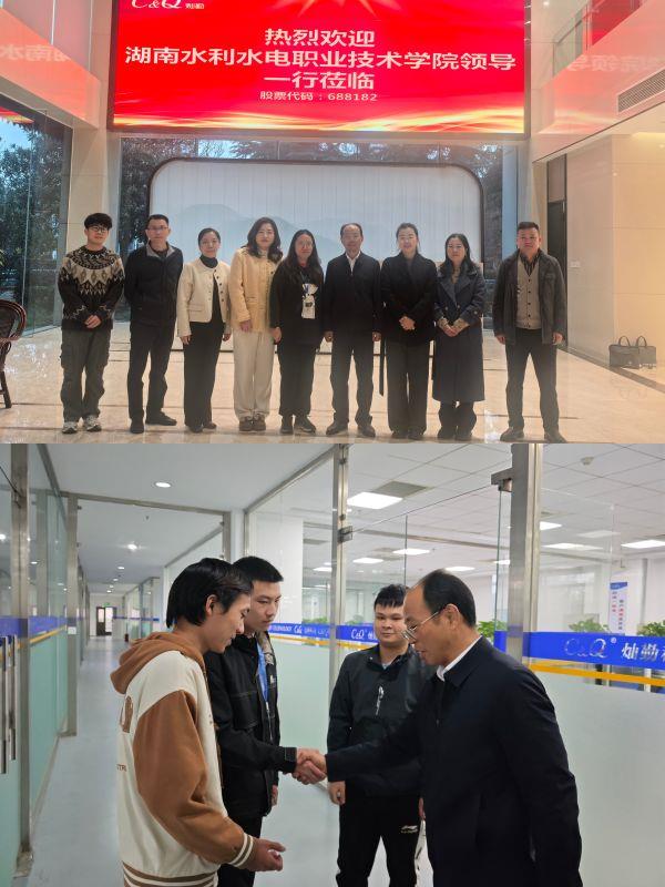 王玉成校长、卜志纯副校长等专程看望了我校在此岗位实习的23级学生肖百林等三位同学,亲切询问他们的工作内容、生活适应情况以及从学生到职场人身份转变的体会,殷切嘱托同学们要珍惜实践机会,勤奋学习技能,主动融入企业,更要发扬湖南人“吃得苦、霸得蛮、耐得烦”的精神品质,在岗位上踏实肯干、锤炼本领,努力为企业发展贡献智慧与力量,展现水院学子的良好风貌。这份来自母校的关怀让同学们倍感温暖与鼓舞,也体现了学校“以生为本”、全程化跟踪服务的就业工作理念。随后,双方就订单培养、招聘专场宣讲、26届毕业生实习就业等达成多项合作意向。