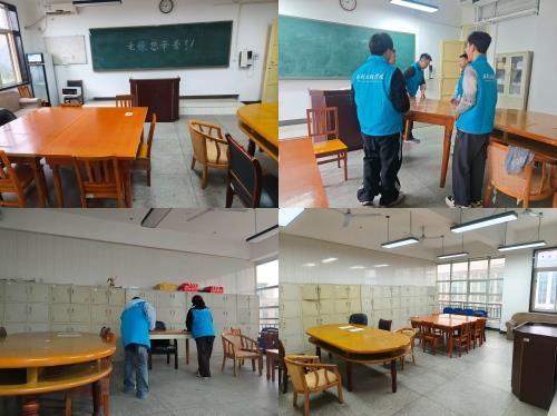 活动当日,校园秩序井然,志愿者们手持扫帚、抹布、拖把等清洁工具,走进第三教学楼教师休息室,细致开展清扫与整理。大家分工协作,默契配合,有的负责地面清扫和拖洗,有的专注于沙发、茶几与窗台的擦拭,有的则整理报刊杂志、归置用品,力求每一个角落都整洁有序。整个过程中,志愿者们态度认真、动作轻柔,以高度的责任感投入到每一处细节,充分展现了新时代青年学生服务他人、甘于奉献的精神风貌。
