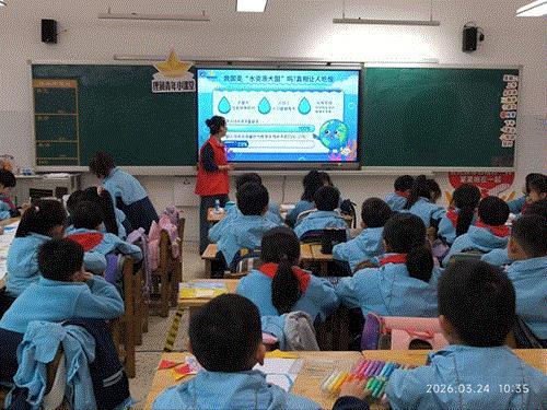 本次活动紧扣2026年“世界水日·中国水周”主题,创新将美育融入节水教育,打造“课堂宣讲+知识闯关+艺术创作”多元体验。课堂上,我校“理润青年”“湘水行者”志愿服务团以“修炼节水小魔法”“赶走浪费水怪”等童趣环节科普水情知识。水知识大闯关环节中抢答,在欢乐中掌握节水护水小技巧。