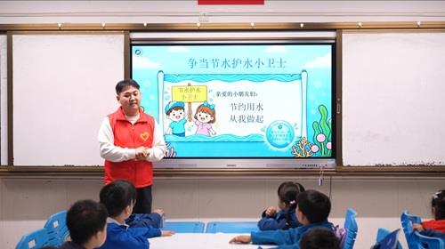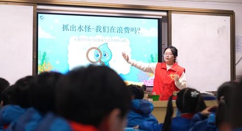 “节水魔法练起来,护水秘籍记心怀!”3月24日上午,长沙市枫树山小学本部及东校区童声嘹亮,“水美‘童’行——以美育心,节水同行”主题宣传活动在此温情启幕。我校100余名师生志愿者走进枫树山小学16个班级,以趣味宣讲、创意绘卷的沉浸式形式,开展节水护水教育,让爱水惜水的种子在童心扎根。