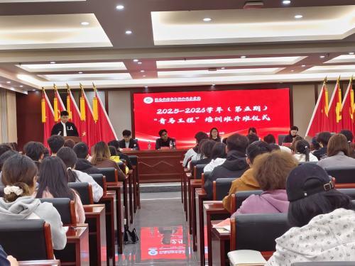4月15日下午,学校第五期“青年马克思主义者”大学生骨干培训班开班仪式暨开班第一课在图书馆实训综合楼601会议室举行。团委相关负责人、各二级学院团总支书记及全体青马学员等120余人参加,开班仪式由经济管理学院团总支书记主持。